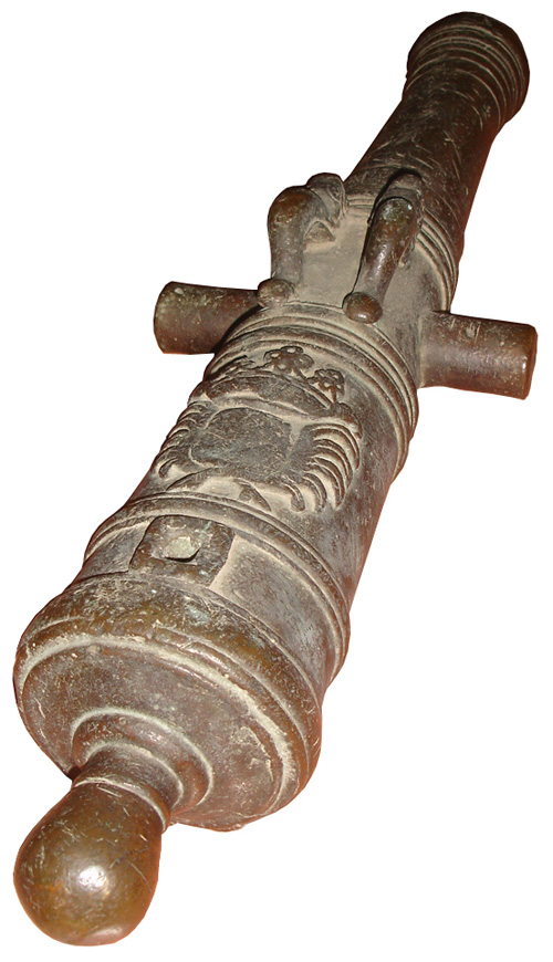 18th Century Spanish Bronze Cannon (please allow time for all the images to load) Items Location: Manila, Philippines ![]() This cannon was owned by a local cannon collector in the Philippines! Below see the photos & details of the Beautiful SPANISH 5 Ouncer Bronze Cannon. (Fires a 5 Ounce Iron Cannon Ball!) ![]() Bore close-up ![]() Front-Top View ![]() Dolphins and Trunnion ![]() Crown Seal and Touch Hole ![]() Cascable Spanish Bronze Cannon details Length = 25 inches (63.5 cm) Bore Diameter = 1 1/8 inches (3 cm) Breech Diameter = 14 inches (35.5 cm) Cannon Diameter at Muzzle = 9 1/2 inches (24 cm) Cannon Width at Trunnions = 7 1/2 inches (19 cm) Trunnion Diameter = 1 3/8 inches (3.5 cm) Trunnion Length = 2 inches (3.5 cm) Total Cannon Weight (guestimate) = More than 80 lbs (36+ kilograms) ![]() NOTES - PAYMENT: PayPal or payment